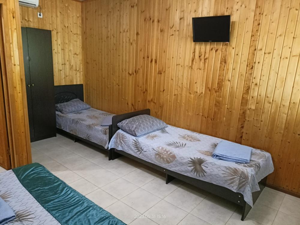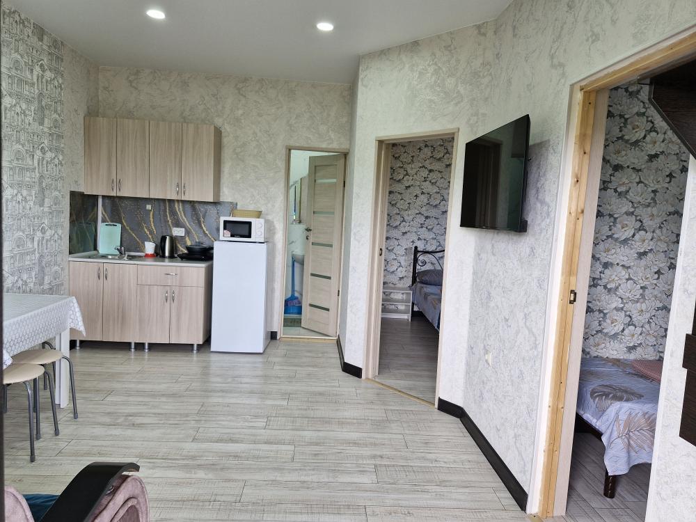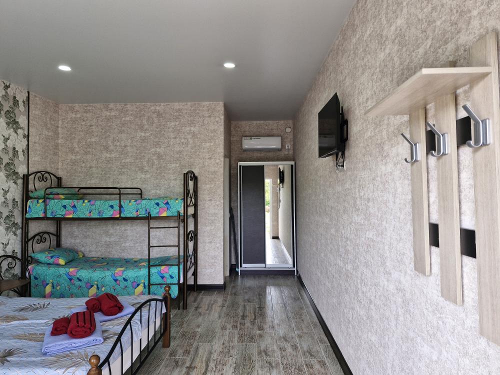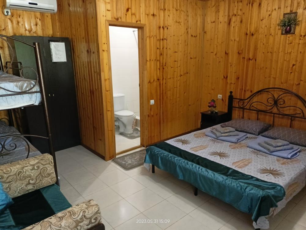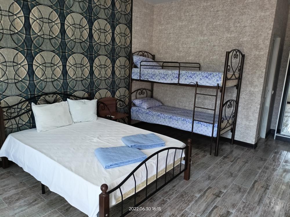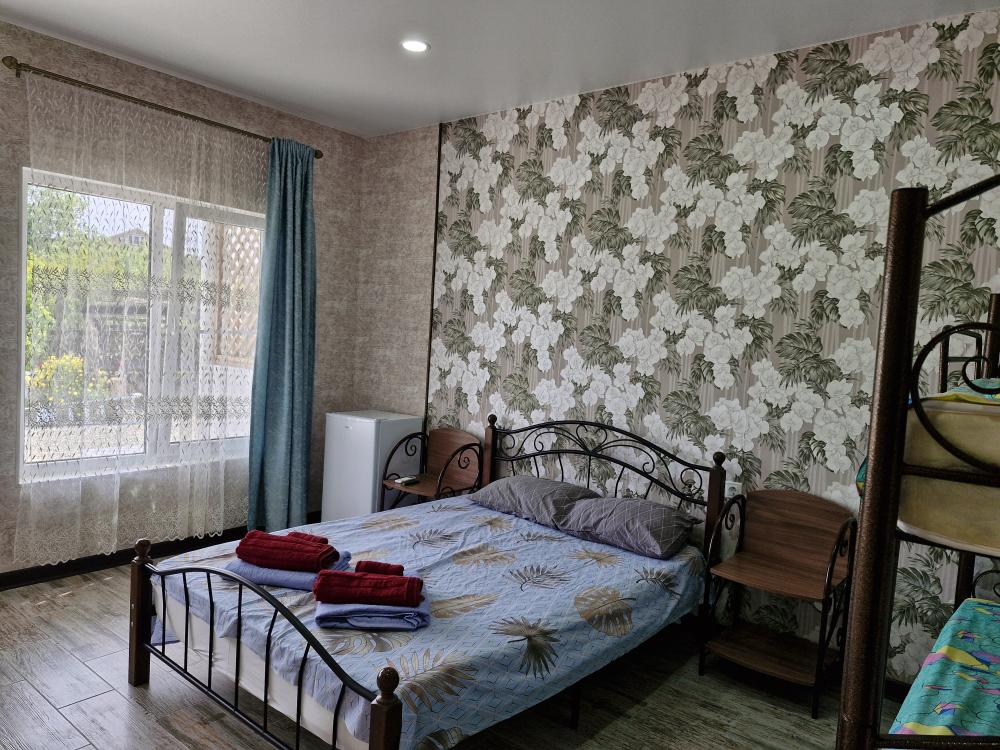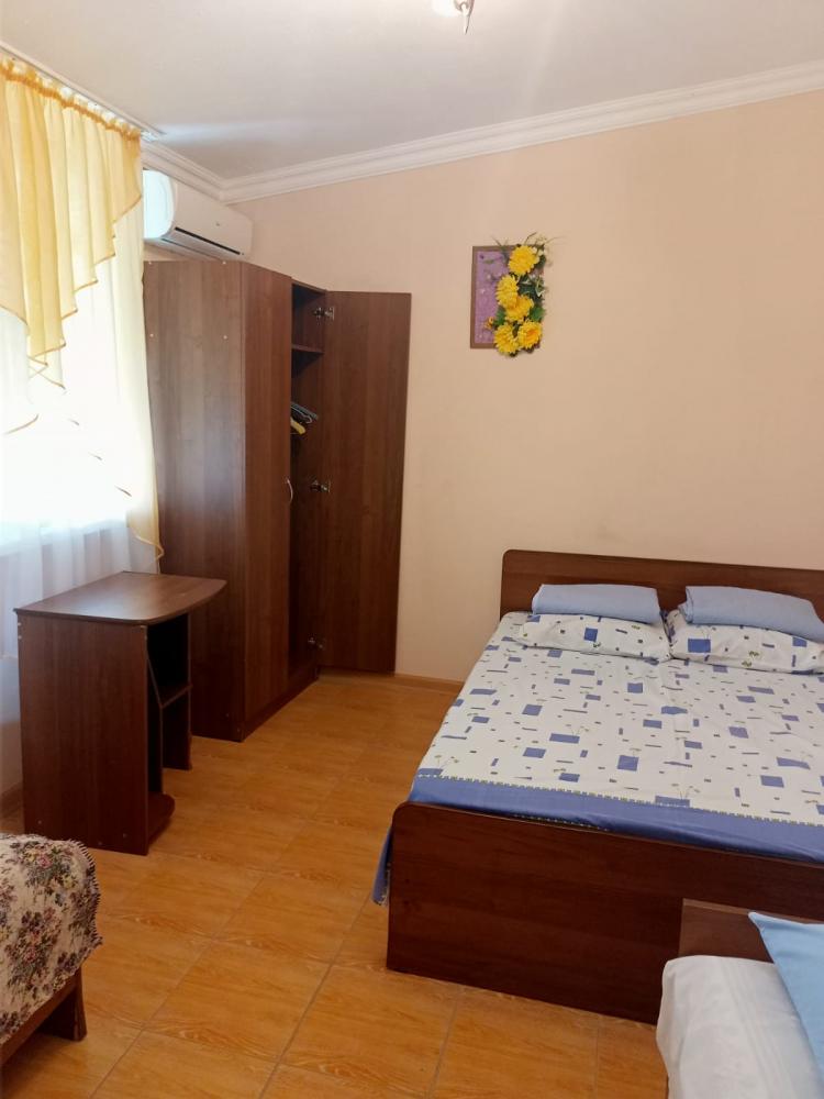 Сдаются номера (2 минуты до берега моря) с комфортной мебелью (2-х и 1 спальная кровать), душ, санузел, телевизор, кондиционер. Общая кухня, детская площадка, беседка, большой двор. Вода круглосуточно. На основной улице кафе, столовые, магазины, экскурсии. А у нас тихо и спокойно. Бесплатно парковка, зелень, овощи и фрукты по сезону. Пляж очень широкий, мелкая галька и песок. Бронь по предоплате.