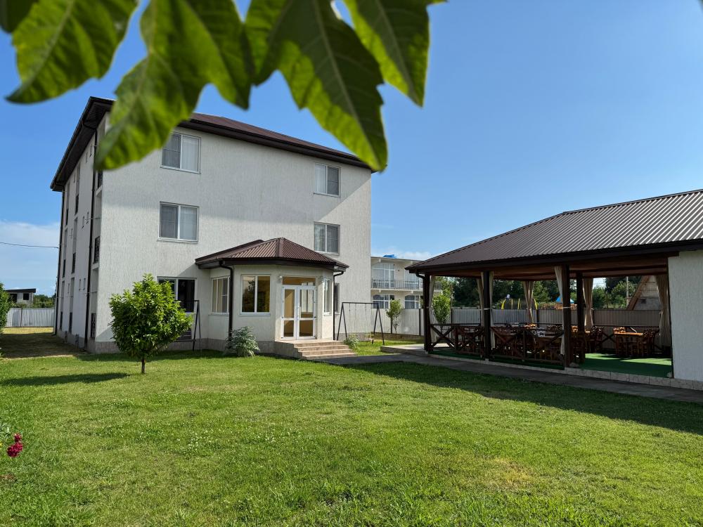 Частная гостиница. Все удобства в номере: сплит-система, холодильник. Вся необходимая мебель (новая). Отличный ремонт, окна пластиковые. Кухня-столовая. Большой паркинг. Детская площадка, теннисный стол. Много красивых цветов, пальмы. На территории имеются лежаки. Море...
