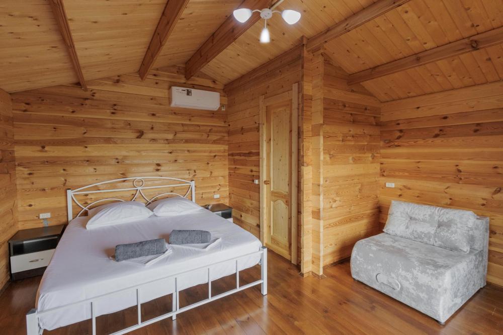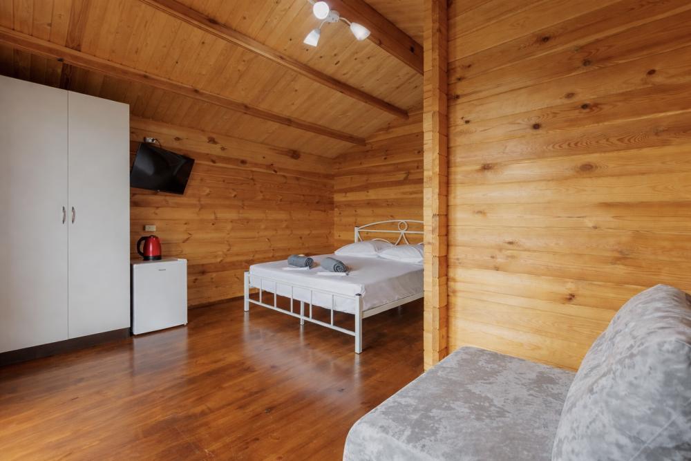 Провели тут 2,5 недели отпуска. Обычно наша семья путешествует с палатками. Но уже захотелось более комфортного отдыха, хотя и дикарями мы любим путешествовать. На этой базе очень мило и красиво. Описания в интернете и фото и отличаются от реальности. Если хотите, то питайтесь в кафе или столовой, но есть и кухня со всем необходимым для самостоятельного приготовления еды. Владелец этого курортного бизнеса – Тимур. Он рассказал, что дело у них семейное. Тимур человек ответственный и приветливый. Разговорились, оказывается, база новая и ещё развивается. Сюда вкладывают душу и средства. Оригинальное решение с домиками нам понравилось, это лучше, чем комнаты с соседями. Только тенька тут маловато, поскольку территория прдолжается обустраиваться. Но в сентябре уже мягкое солнышко. На пляже галька, народа в сентябре уже немного. Есть кафе тут, но на этом и всё. К пляжу идти минут 5-7. База «Мандарин» находится недалеко от достопримечательностей. Приезжайте.