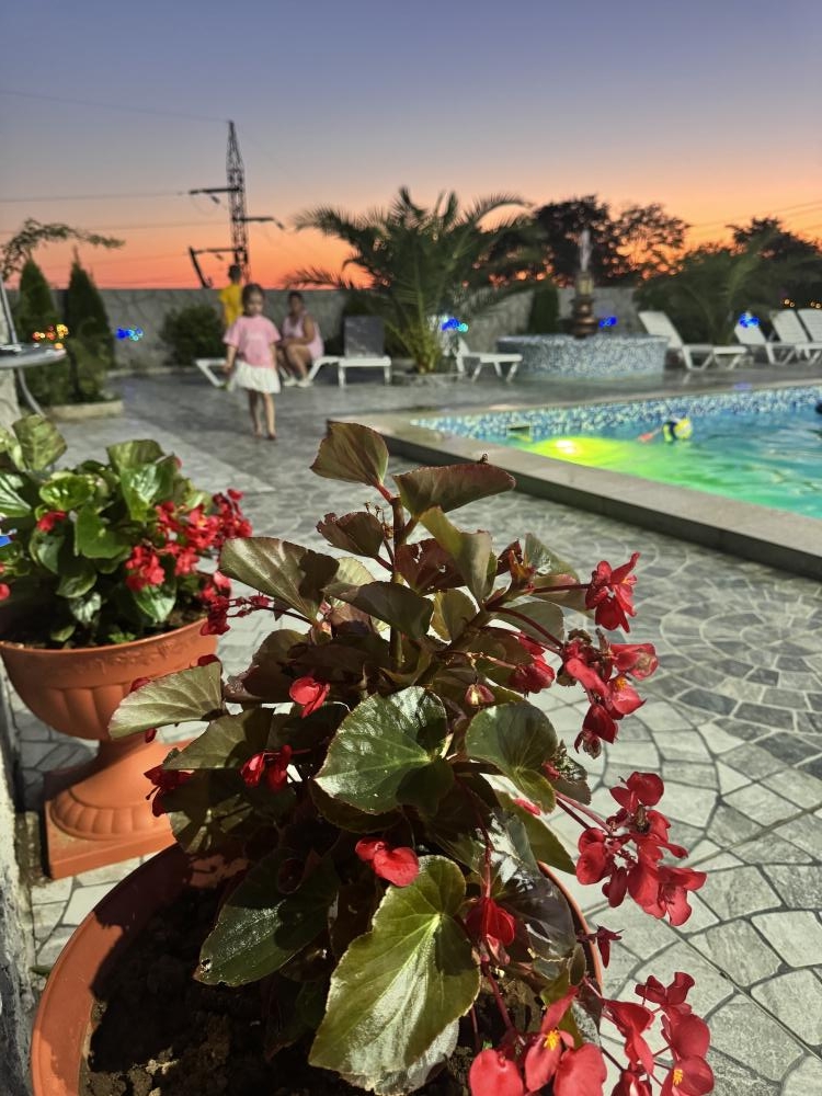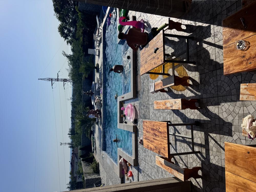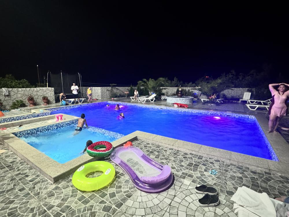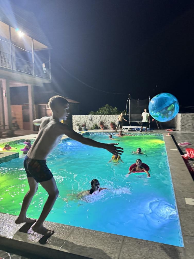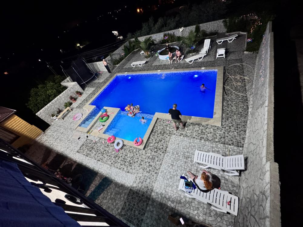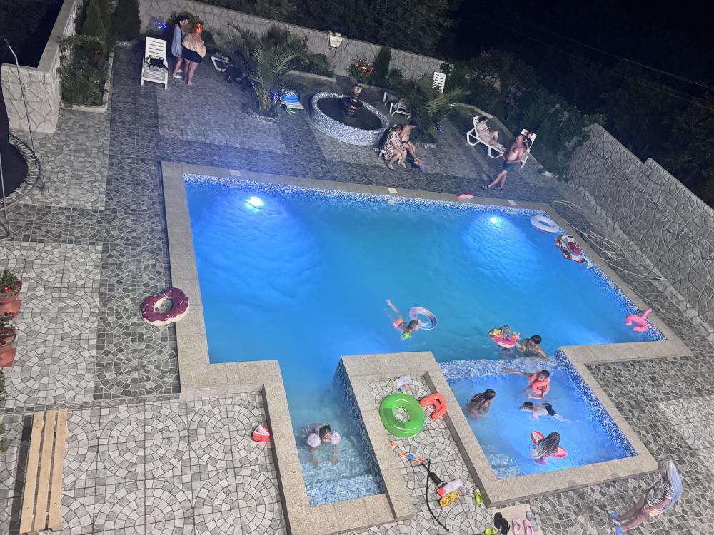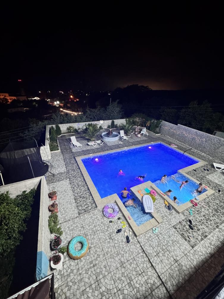 Гостевой дом «Анжелика» находится в частном секторе п. Цандрипш (бывш. Гантиади) Гагрского р-на Абхазии. До моря 15-20 минут пешком. Дорога от моря к дому немного в гору. Рядом находится лес, горы, вокруг спокойствие и гармония. Гостевой дом «Анжелика» - это идеальное место для тихого семейного отдыха в Абхазии. Для размещения гостей предлагаются номера Стандарт со всеми удобствами, номера с балконом и панорамным видом на море и горы, а также номера эконом-класса с общими удобствами на этаже. По запросу в номер может быть установлена детская кроватка для детей до 2 лет. Горячая и холодная вода в доме круглосуточно. К услугам гостей бесплатный wi-fi, гладильные принадлежности, стиральная машина, мангал, парковка. На территории дома большой бассейн 5х10 метров с отделением для детей, детский игровой уголок с качелями, горкой, батутом. Также работает сауна. В саду растут фруктовые деревья (мандарины, апельсины, хурма, персик, инжир, киви, виноград). В 400 метрах от дома продуктовый магазин. В нескольких минутах езды - центральный рынок Цандрипша. Для всех желающих организуются экскурсии по Абхазии. Если Вы скучаете по простоте сельской жизни, если Вам хочется отдохнуть в Абхазии в тишине и спокойствии – тогда вам непременно понравится в нашем гостевом доме! В гостях у Анжелики вас ждет радушный прием и внимание, уютные номера, возможность совмещать спокойный пляжный отдых с разнообразными поездками по достопримечательностям Абхазии. В нашем доме оборудована очень большая кухня, где можно самостоятельно готовить еду. Все для этого имеется: посуда, холодильники, плита, свч, раковина. Также на территории работает столовая с домашней кухней, по желанию можно заказывать любой прием пищи или комплексное 3-разовое питание. Великолепный галечно-песчаный пляж находится в 20 минутах ходьбы от дома (1,3 км). Так как наш дом расположен на возвышенности, обратная дорога с пляжа до дома имеет небольшой подъем. Все номера с балконами! В номере (душ, туалет, кондиционер, телевизор, холодильник). Доп места по запросу!