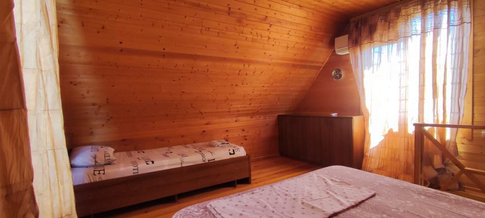 Домики отличные. Два этажа, отдыхали с детьми. На первом этаже кровать двуспальная, на втором три спальных места. Для семьи прекрасный вариант. Готовили на летней кухне, все необходимое есть для этого. В домике есть холодильник, на каждом этаже кондиционеры. Душ и туалет на 1 этаже. До моря шли минут 5.