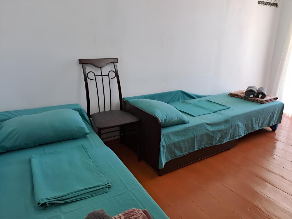 | Двухместный номер с частичными удобствами. В номере: кондиционер, необходимая мебель, wi-fi, фен, полотенца, постельное белье. Ванная комната расположена вне номера, относится только к данному номеру, поэтому никаких очередей в ванную не будет. Душ и туалет новые, построены в 2025 году. |