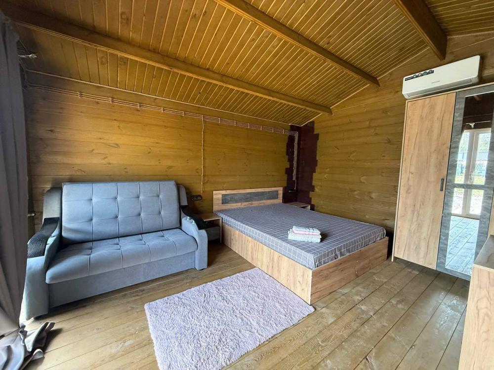 Гостевые дома «Своя поляна» - уютный уголок для тех, кто ищет приватность, тишину и комфорт на природе. Никаких общих стен и шумных соседей — каждый домик стоит отдельно на расстоянии 3 метра друг от друга. В каждом домике установлены премиальные ортопедические матрасы Askona. Обеспечьте себе по-настоящему качественный отдых после моря и экскурсий. Всего 10–15 минут пешком до главного оздоровительного комплекса Абхазии. Это термальные бассейны, природный гидромассаж и лечебные грязи для восстановления суставов, кожи и нервной системы. Идеально для оздоровительного туризма круглый год. Мы находимся в тихом, живописном месте посреди леса, вдали от шума машин и пыли центральной улицы. За участком протекает чистый природный ручей. До моря и чистого пляжа всего 600 метров (10 минут пешком), до знаменитого Кындыгского горячего источника 1200 метров. Один из домиков специально спроектирован для гостей с ограниченными возможностями — удобный пандус, просторное помещение и безопасное размещение внутри. Внутри домика: двуспальная кровать с матрасом Askona и удобный раскладной диван (подходит для 2-х маленьких детей или 1 взрослого), собственный современный санузел с душем и горячей водой, сплит-система, телевизор, мини-холодильник, чайник. Современная отделка натуральным деревом. Собственная просторная терраса. В шаговой доступности находится проверенное кафе «Милада» — отличная вкусная кухня и очень демократичные цены. Идеально, чтобы не тратить время отдыха на готовку. К началу летнего сезона на нашей территории откроется оборудованная общая летняя кухня, где вы сможете готовить самостоятельно. Можем встретить вас в аэропорту Сочи на комфортном минивэне. Закрытая парковка на территории. Wi-Fi. Ждём вас в нашем уютном уголке, чтобы подарить вам незабываемый отдых в Абхазии!