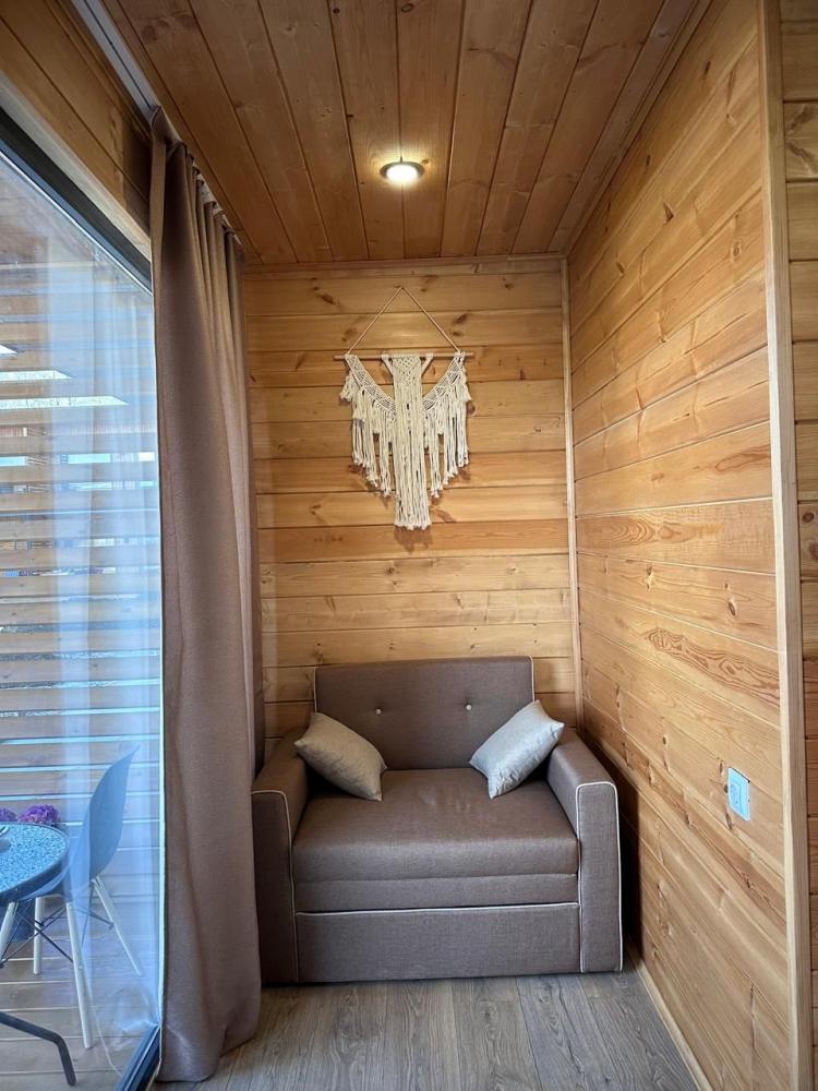 | Уютные номера со всеми необходимыми удобствами. В номере двуспальная кровать, комфортные матрасы Askona, кресло-кровать, стулья, прикроватные тумбочки, стол, полки, вешалка, зеркало, уличная мебель. В ванной теплый пол в зимнее время. К удобствам гостей премиальное белье, полотенца, сплит-система, спутниковое ТВ, холодильник, Wi-Fi интернет, фен, туалетные принадлежности (шампунь, гель для душа, мыло, набор зубных щеток), чайная станция (чай, кофе, сахар), посуда, балкон, терраса. В данном номере по запросу возможно размещение на дополнительном месте за дополнительную плату. |