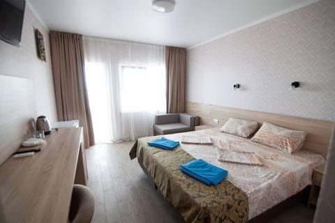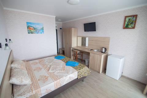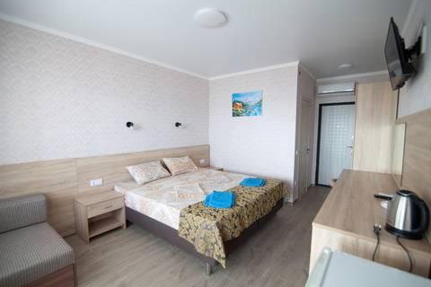 | В номере: | душ, туалет, умывальник, горячая вода, фен, кондиционер, балкон, мягкая мебель, телевизор, спутниковое ТВ, холодильник, сейф, вид на море |