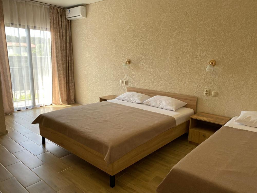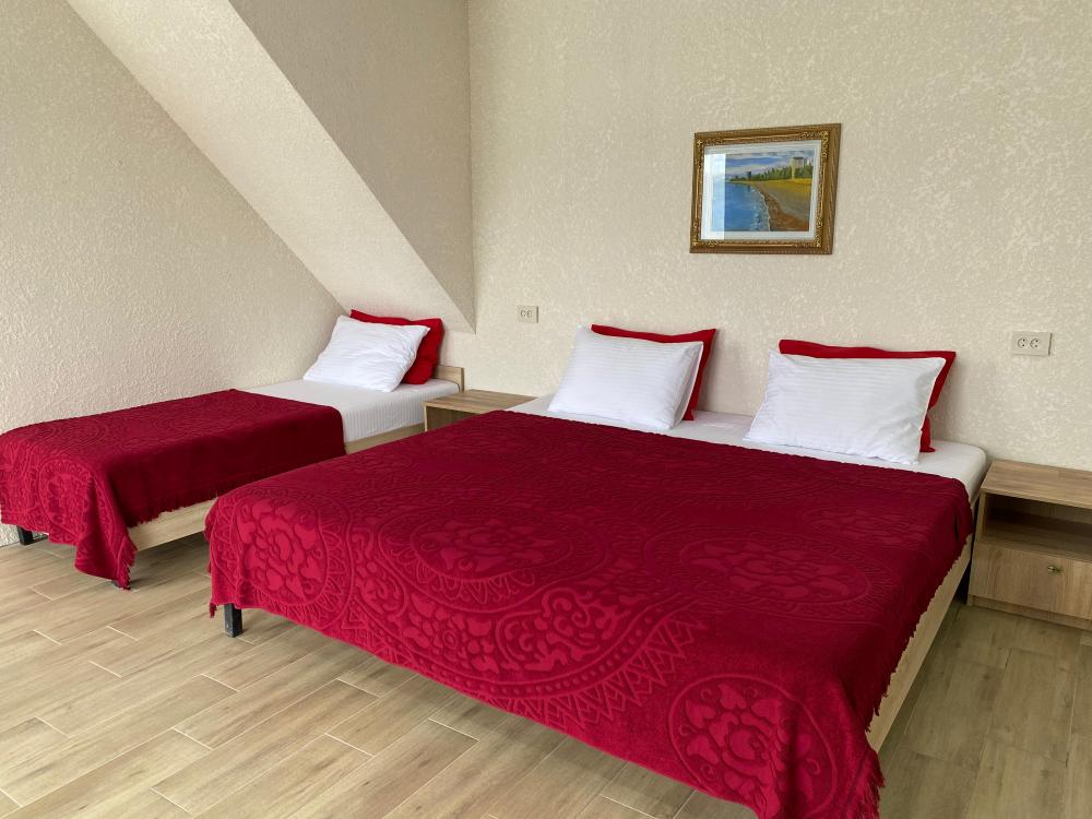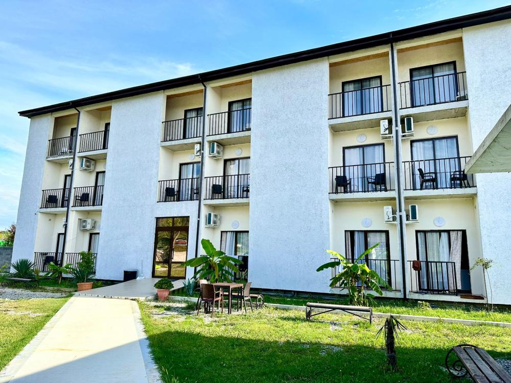 Отель «Корона Абхазии» расположен в 7 минутах ходьбы до моря. Кристально чистое море с мелкой галькой. Люкс номера, панорамный выход на балкон с видом на сосны (морская сторона), либо видом на горы с широким обзором. Есть также двухъярусные номера вместимостью 4 человека + доп место). Охраняемая просторная территория с бесплатным парковочным местом, на территории есть детская площадка, волейбольная площадка, мангальная зона, просторная кухня и столовая, которые сделают ваш отдых более комфортным. Отель предоставляет услуги трансфера и организации экскурсий за дополнительную плату. В шаговой доступности магазины, кафе, столовые, аптеки. Отель расположен напротив центрального входа на пляж.