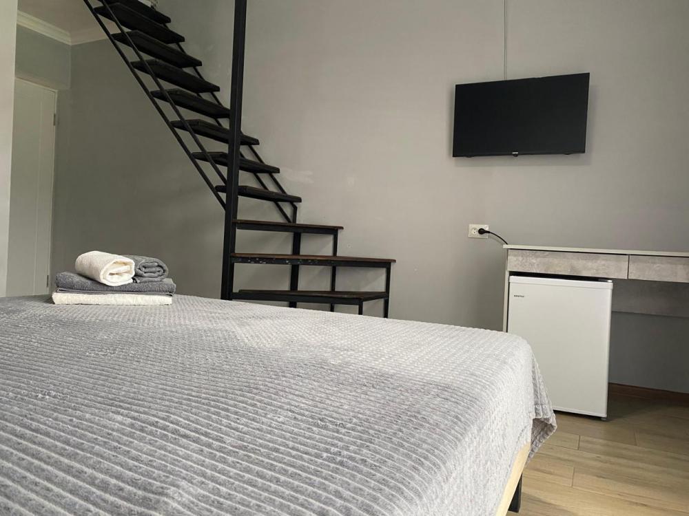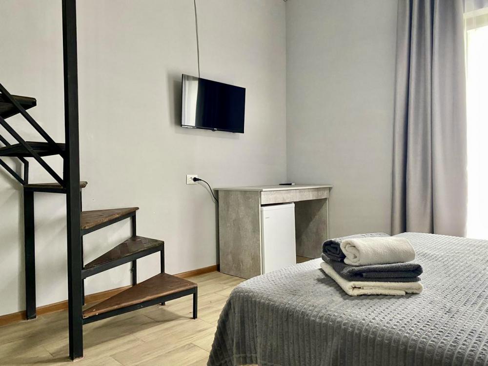 Всего 1 номер на 3 этаже, панорамные выходы на 2 балкона, откуда открывается вид на сосны (морская сторона) |