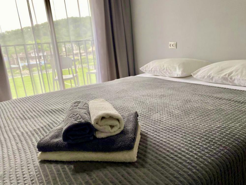 В номере: | душ, туалет, умывальник, горячая вода, фен, кондиционер, балкон, новая мебель, телевизор, холодильник |