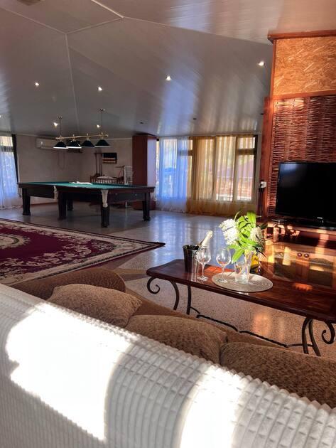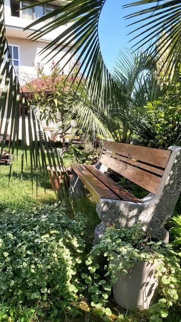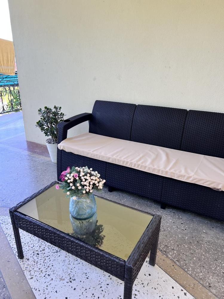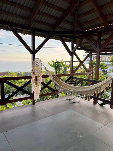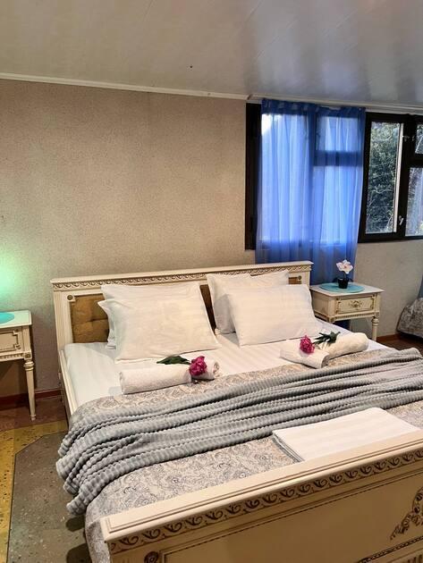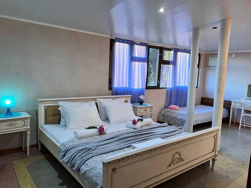 Приглашаем Вас на время оказаться в раю. Здесь Вы сможете без суеты, с полным комфортом провести свой отпуск. Дом расположен в тихом месте, с панорамным видом на море и горы. Дом с отдельным входом (Дуплекс). В вашем распоряжении 3 этаж, общая площадь сдаваемого в аренду помещения 200 м2. Дом идеально подходит для совместного отдыха семьей или большой компанией друзей. Максимальное количество до 9 человек. В помещении две изолированные спальни с кондиционерами, просторная гостиная с бильярдом, светлая кухня с видом на море и горы (оборудованная, укомплектованная), холодильник, стиральная машина-автомат, плита, чайник, утюг, фен. Санузел (душ, туалет) раздельный. Вокруг дома большой двор с парковкой, фруктовый сад — 1 га, много обустроенных теневых зон для отдыха, мангальная зона. Прогулки по аллеям сада подарят вам возможность насладиться ароматом цитрусовых и красотой природы. Здесь вы сможете не только отдохнуть, но и порадовать себя свежими мандаринами и апельсинами прямо с дерева! Дом находится на небольшой возвышенности, обеспечивая прекрасную панораму окрестностей. Есть общая крытая площадка для йоги и медитации с панорамным видом на море и горы (рассчитана для гостей 3х домов), территория огорожена и охраняется. До моря 10-15 минут (700 метров). Идеальный отдых для тех, кто предпочитает тишину и комфорт. Трансфер от аэропорта и ж/д вокзала до дома по договоренности.
