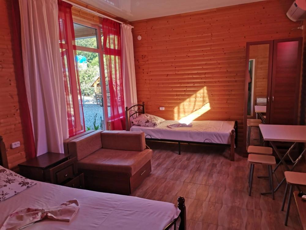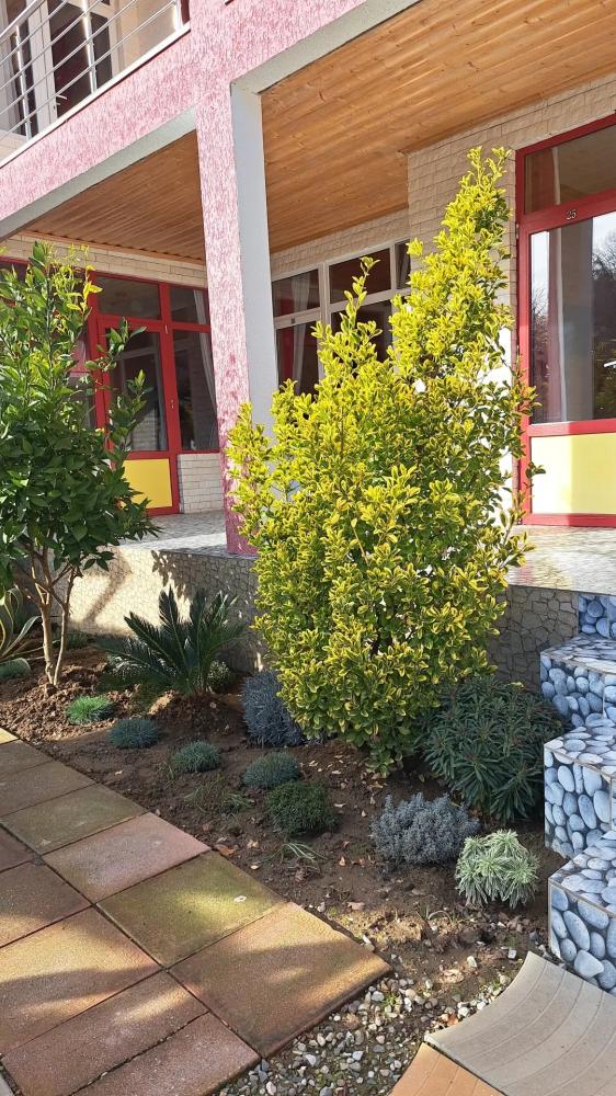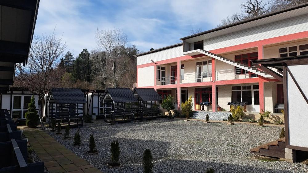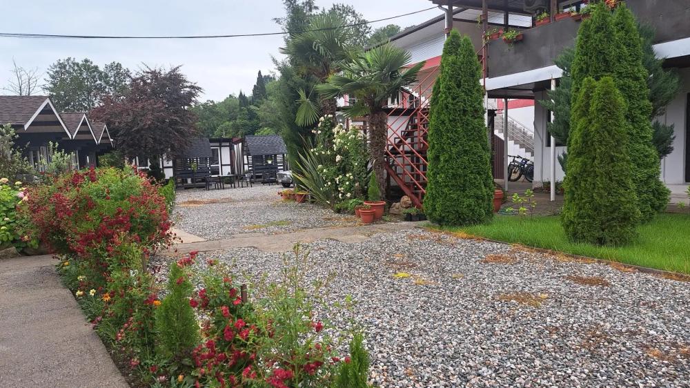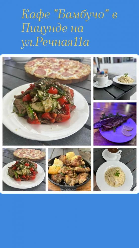 Мини-отель «Бамбучо» по улице Речная, 11а расположен в с. Лдзаа в 5 км от Пицунды (10 минут езды), в 10 минутах ходьбы от моря, пляж галечный. До соснового бора 20 минут. До песчаного пляжа 20 минут. Для гостей подготовлены номера 2х, 3х местные Эконом-класса с удобствами во дворе, 2х, 3х, 4х местные Комфорт с удобствами в номере (телевизор, кондиционер, холодильник, душ, туалет), небольшие комнаты на 2х Стандарт (телевизор, кондиционер, холодильник, душ, туалет), небольшие домики Эконом с удобствами во дворе, а также 2-3х местные Коттеджи с удобствами. Для номеров без удобств предусмотрены санузлы, и душевые кабины. Всё в прекрасном состоянии и с постоянным поддержанием чистоты. Работает Wi-Fi. Кухни нет, есть чайник и микроволновка (приготовить чай и подогреть еду можно) на общей кухонной зоне. Для номеров и Домиков Эконом класса есть общий холодильник. Для Вашего удобства прямо во дворе расположено кафе-столовая, где Вы можете как питаться в любое время, так и заранее, к примеру заказать трехразовое питание за отдельную плату. Территория гостиницы очень красиво украшена различными сортами цветочных насаждений, что не может ни радовать глаз постояльцев. На территории расположены прекрасные беседки, где можно провести свой досуг, насладиться прекрасным чистым воздухом и замечательным видом на наши красоты. Для детей есть качели, прокат велосипедов. В 2026 году на территории: бассейн, детская площадка, батут. Так же, для Вас можем организовать экскурсии (озеро Рица, Новый Афон, святые места, ботанический сад, форелевая ферма, дачи Сталина, обезьяний питомник и т д). У нас Вы можете попробовать национальные блюда, сыр Сулугуни, вино, чачу, варенье, компоты, все это можно приобрести прямо на территории. Благодаря удобному расположению гостиницы, для Вас в 10 минутах ходьбы магазин, и при необходимости в 10 минутах езды имеется даже рынок, где Вы сможете приобрести всевозможные национальные продукты. За дополнительную плату, нашим гостям мы можем организовать трансфер с аэропорта и ж/д вокзала. Бронирование по предоплате.