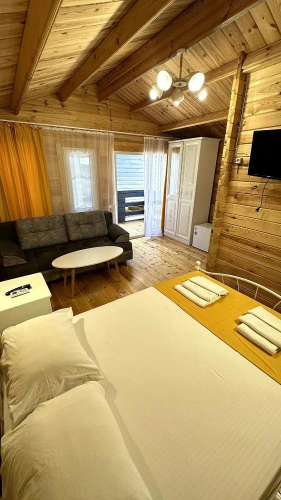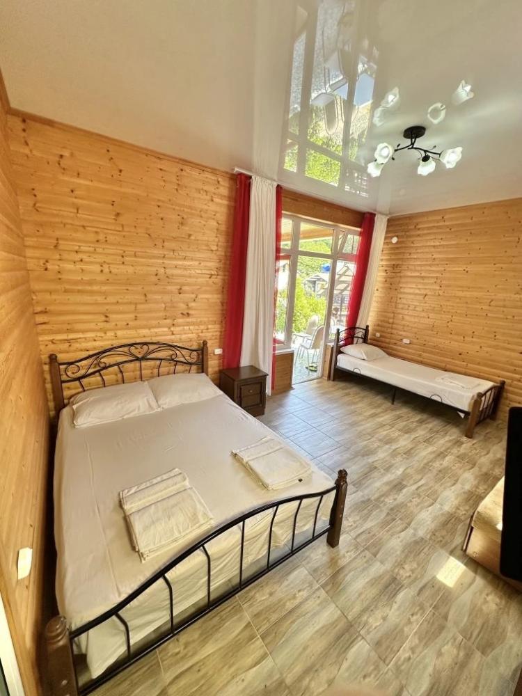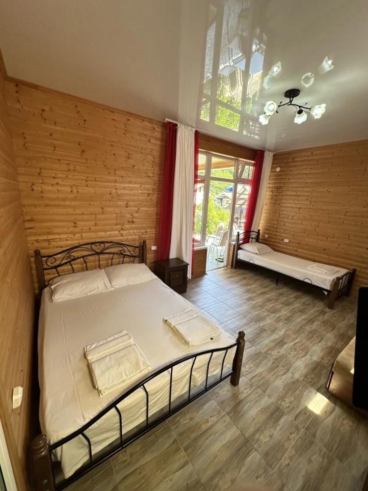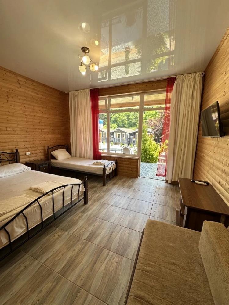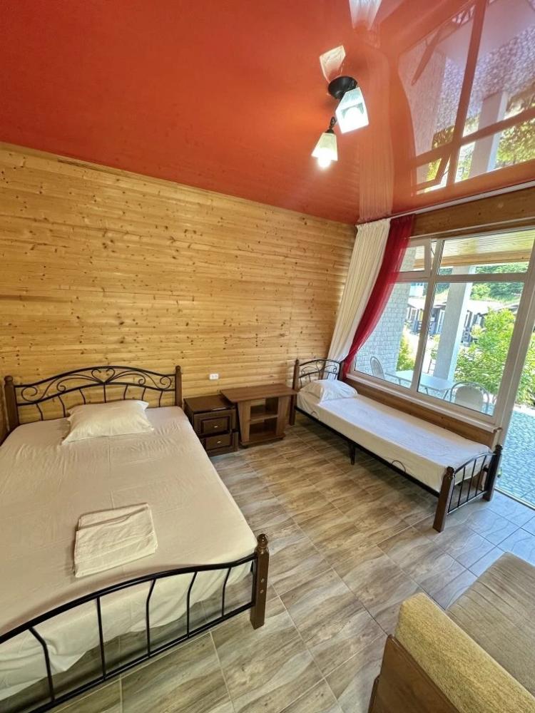 Мини-отель «Бамбучо» по улице Речная, 11а расположен в с. Лдзаа в 5 км от Пицунды (10 минут езды), в 10 минутах ходьбы от моря, пляж галечный. До соснового бора 20 минут. До песчаного пляжа 20 минут. Для гостей подготовлены номера 2х, 3х местные Эконом-класса с удобствами во дворе, 2х, 3х, 4х местные Комфорт с удобствами в номере (телевизор, кондиционер, холодильник, душ, туалет), небольшие комнаты на 2х Стандарт (телевизор, кондиционер, холодильник, душ, туалет), небольшие домики Эконом с удобствами во дворе, а также 2-3х местные Коттеджи с удобствами. Для номеров без удобств предусмотрены санузлы, и душевые кабины. Всё в прекрасном состоянии и с постоянным поддержанием чистоты. Работает Wi-Fi. Кухни нет, есть чайник и микроволновка (приготовить чай и подогреть еду можно) на общей кухонной зоне. Для номеров и Домиков Эконом класса есть общий холодильник. Для Вашего удобства прямо во дворе расположено кафе-столовая, где Вы можете как питаться в любое время, так и заранее, к примеру заказать трехразовое питание за отдельную плату. Территория гостиницы очень красиво украшена различными сортами цветочных насаждений, что не может ни радовать глаз постояльцев. На территории расположены прекрасные беседки, где можно провести свой досуг, насладиться прекрасным чистым воздухом и замечательным видом на наши красоты. Для детей есть качели, прокат велосипедов. В 2026 году на территории: бассейн, детская площадка, батут. Так же, для Вас можем организовать экскурсии (озеро Рица, Новый Афон, святые места, ботанический сад, форелевая ферма, дачи Сталина, обезьяний питомник и т д). У нас Вы можете попробовать национальные блюда, сыр Сулугуни, вино, чачу, варенье, компоты, все это можно приобрести прямо на территории. Благодаря удобному расположению гостиницы, для Вас в 10 минутах ходьбы магазин, и при необходимости в 10 минутах езды имеется даже рынок, где Вы сможете приобрести всевозможные национальные продукты. За дополнительную плату, нашим гостям мы можем организовать трансфер с аэропорта и ж/д вокзала. Бронирование по предоплате.