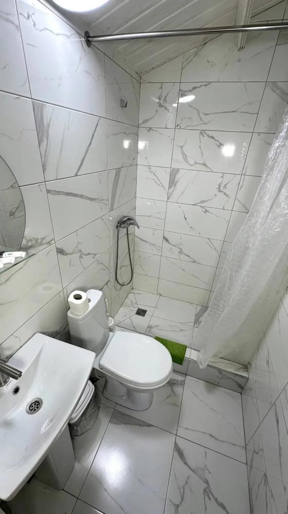 | Санузел в доме. В доме двуспальная кровать и раскладной диван-книжка. |