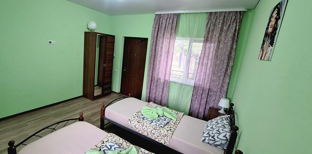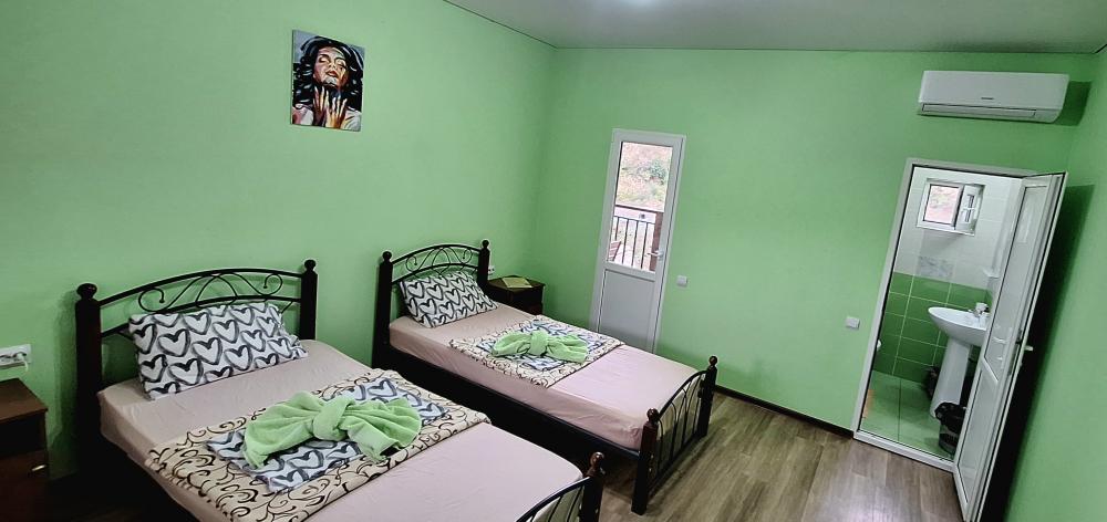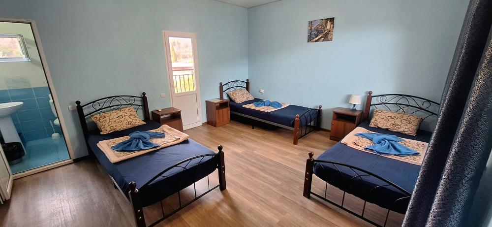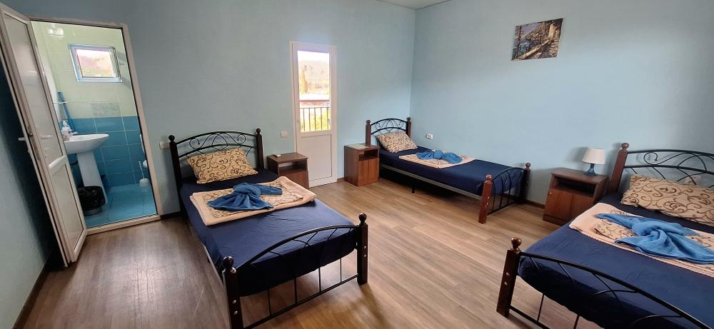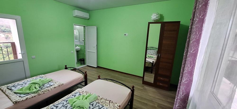 | Номер находится на 3 этаже с отдельными кроватями, рассчитан на 3 человека! Балкон с прекрасным видом на горы, где можно провести чудесный вечер, столик и освещение есть на балконе! |