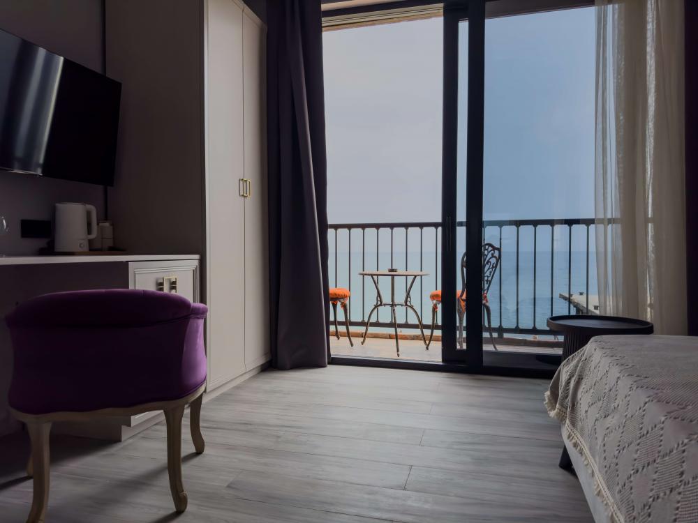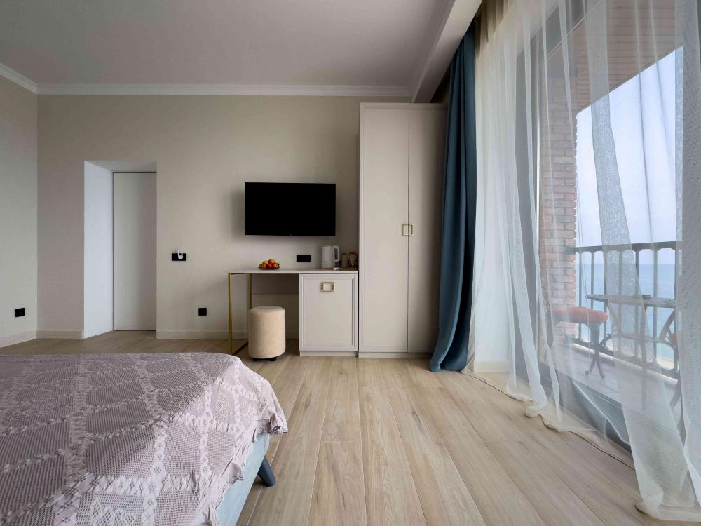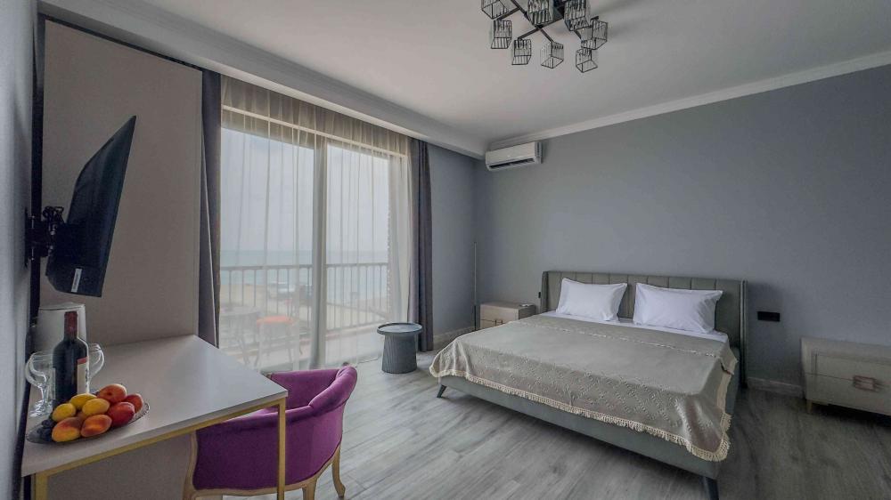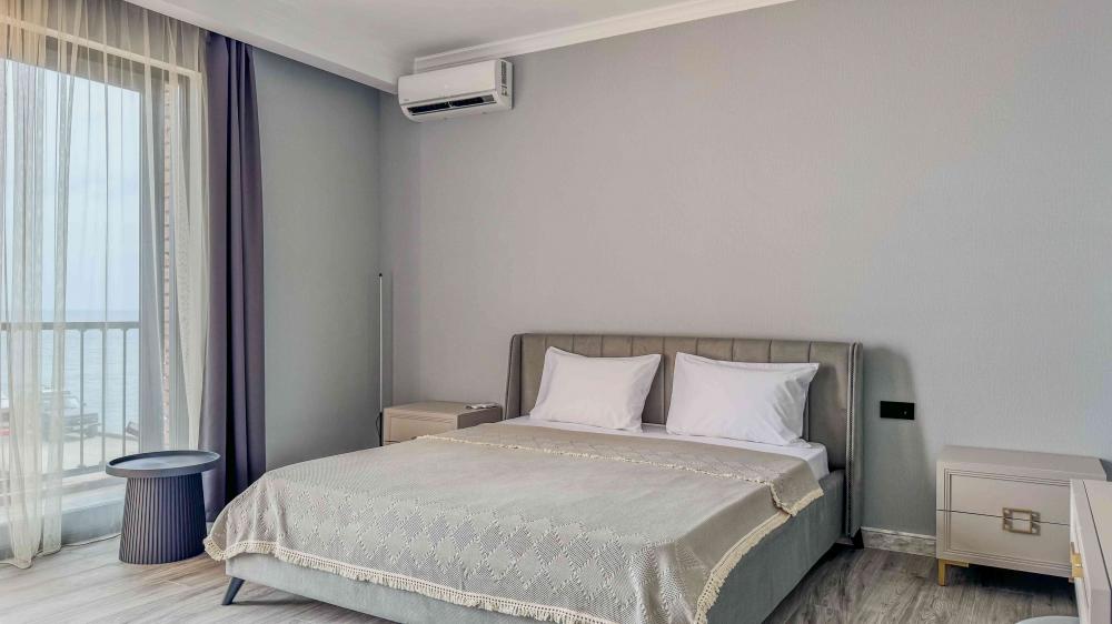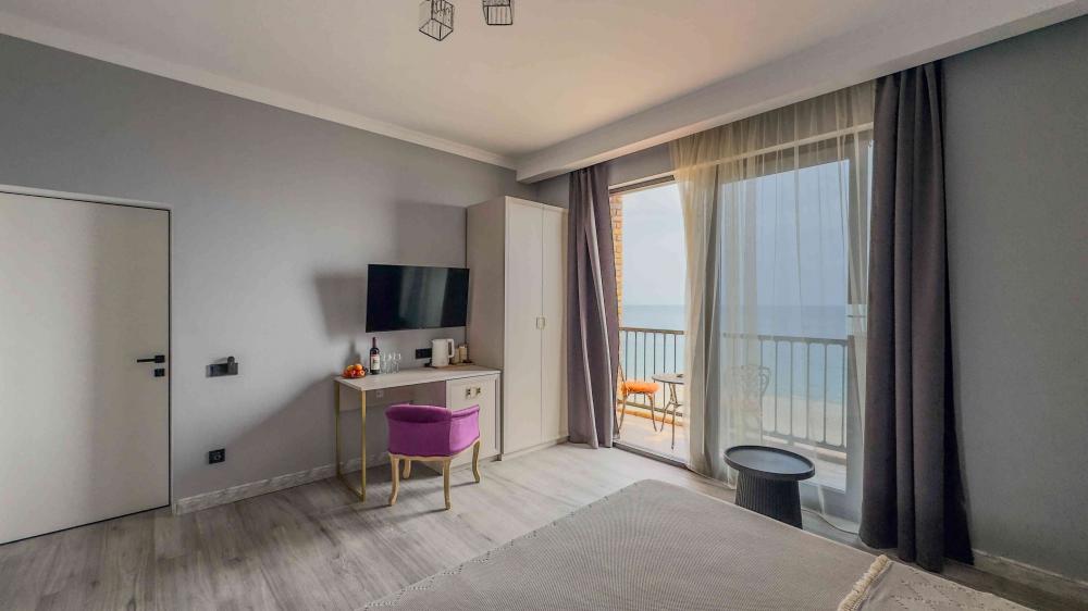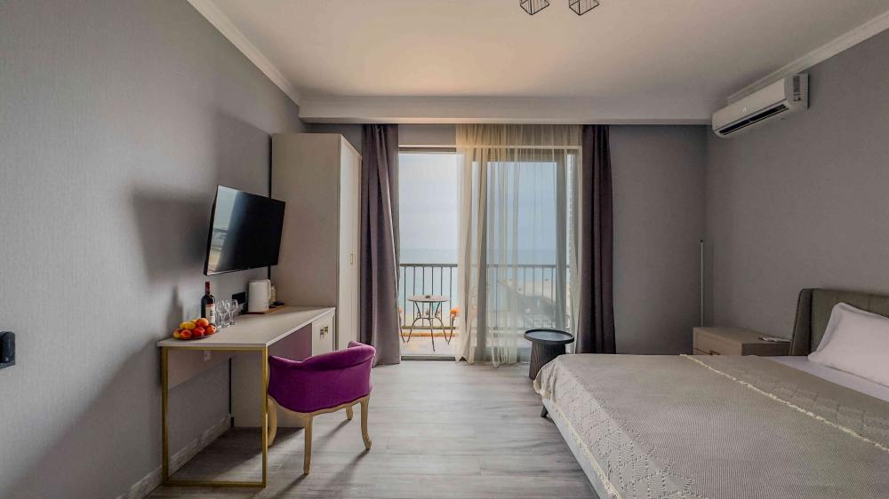 | В номере: | душ, туалет, умывальник, горячая вода, фен, кондиционер, балкон, мягкая мебель, новая мебель, телевизор, спутниковое ТВ, холодильник, вид на море |