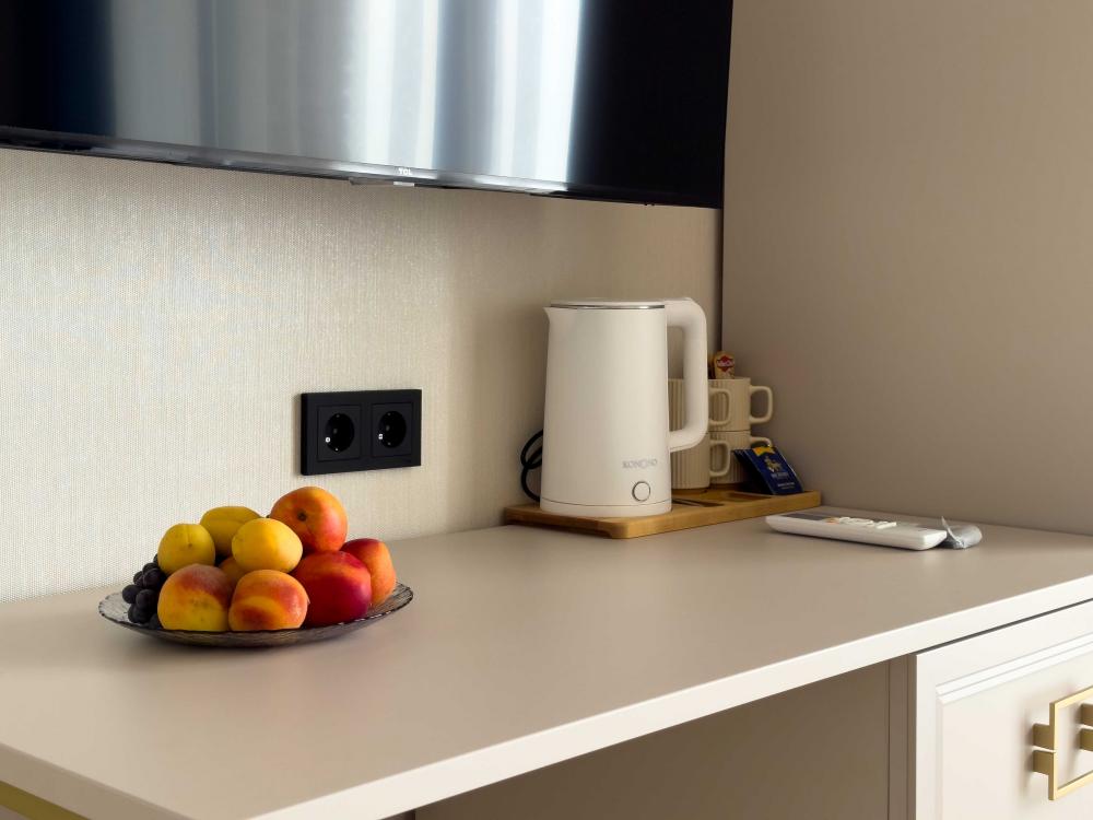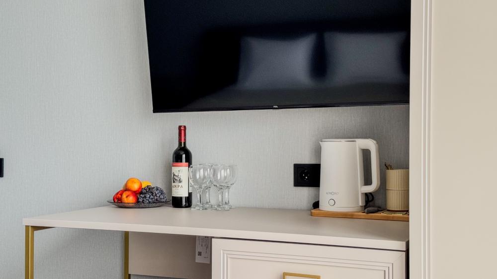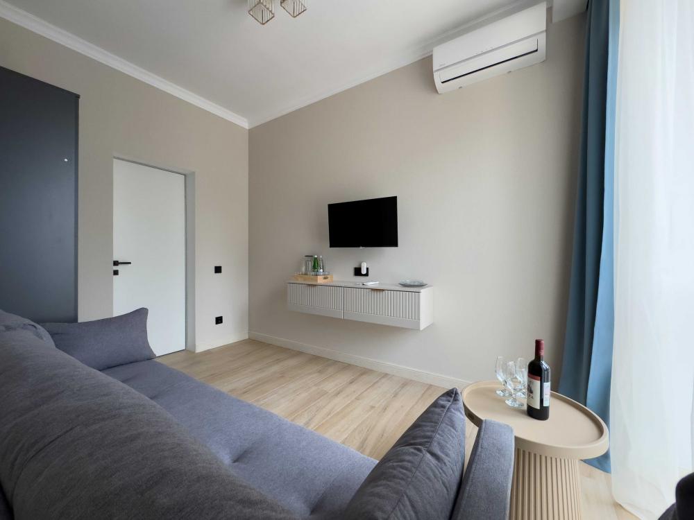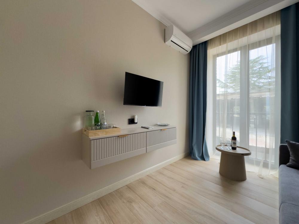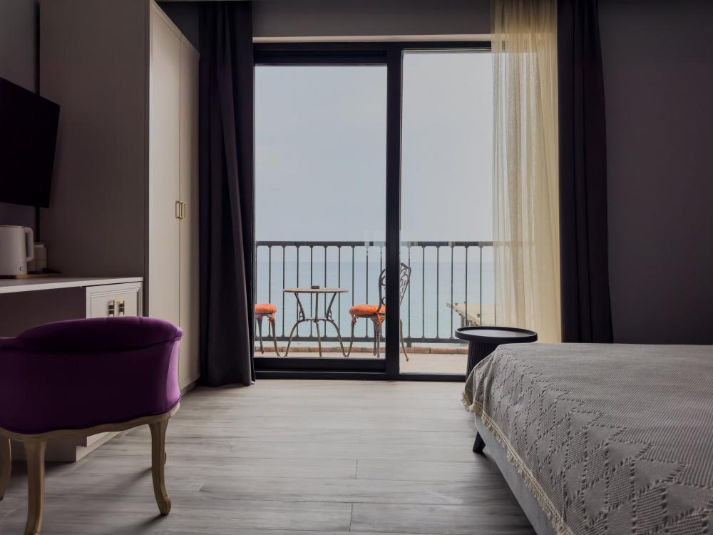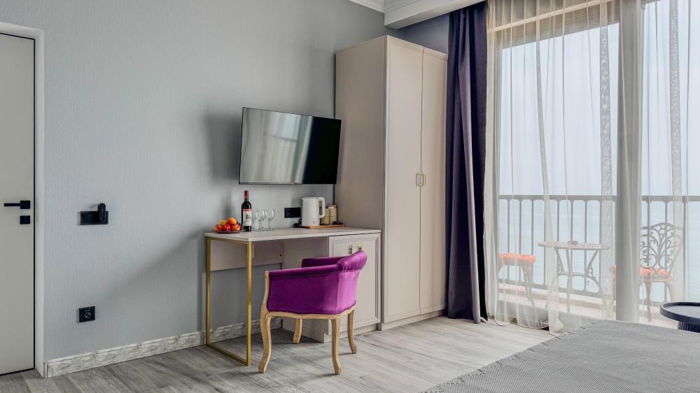 | В номере: | душ, туалет, умывальник, горячая вода, фен, кондиционер, балкон, мягкая мебель, новая мебель, телевизор, спутниковое ТВ, холодильник, вид на море |