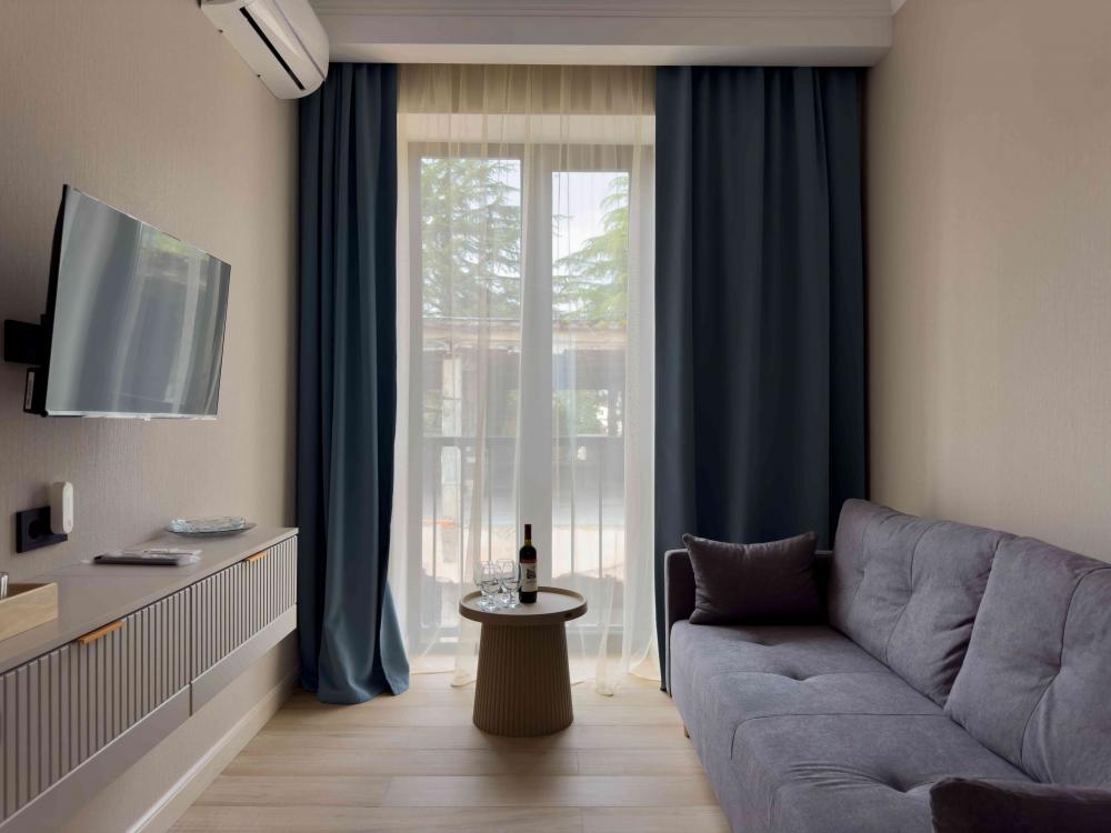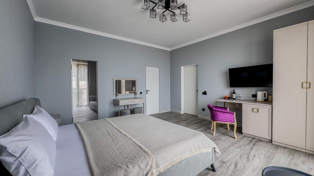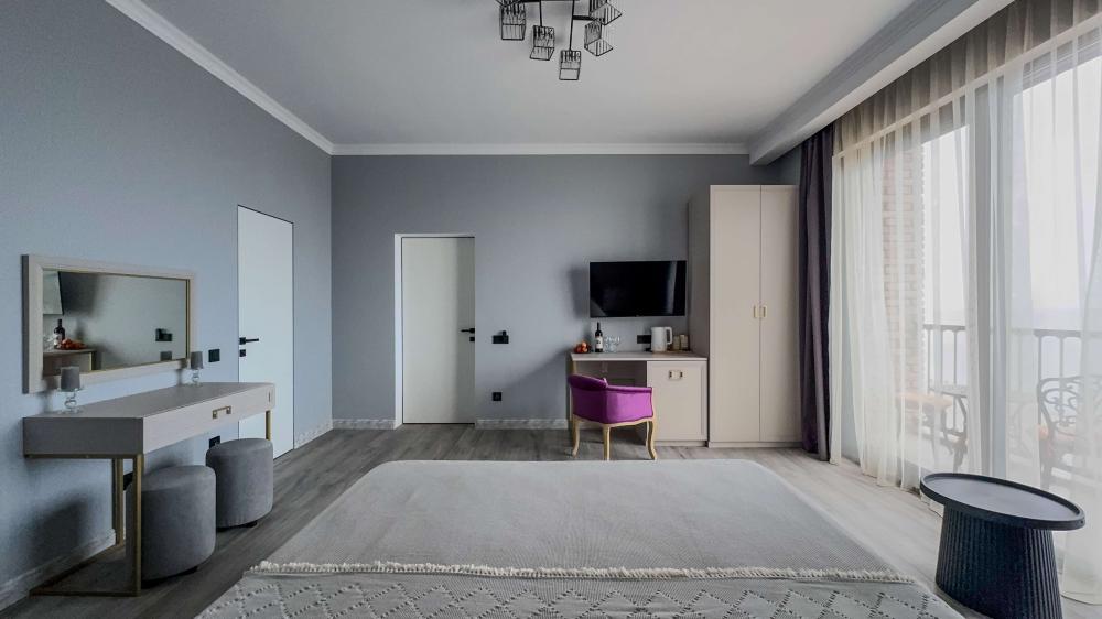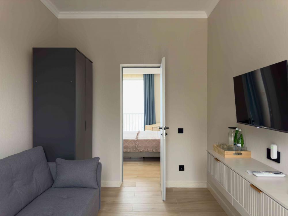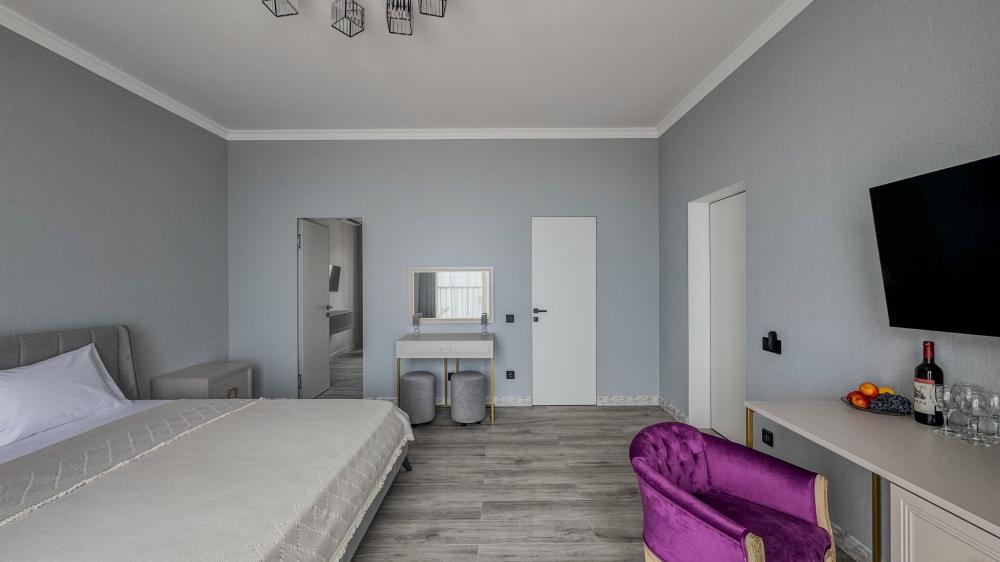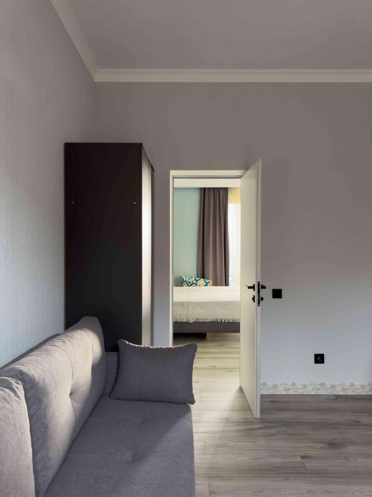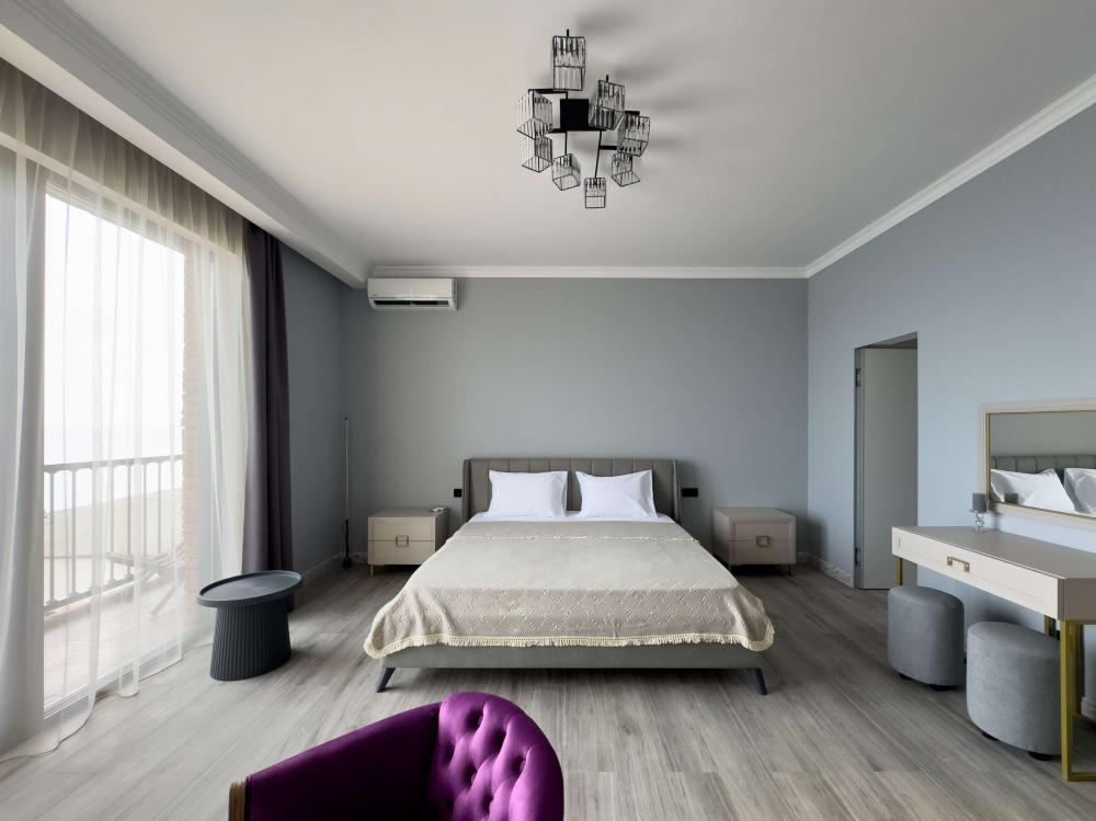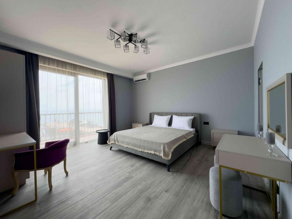 Отель «Sun Amra» расположен в живописном районе Рыбзавода поселка Лдзаа. Здесь чистейшее тёплое море Пицундской бухты и песчано-галечный пляж, который начинается прямо от порога. Всего 6 просторных двухкомнатных номеров категории Люкс (размещение до 4 гостей, изолированные комнаты) с панорамными окнами и собственными балконами с прямым видом на море. В каждой комнате современная авторская мебель, уютные декоративные акценты и всё необходимое для полноценного отдыха: кондиционер, телевизор, чайный набор, тропический душ, косметика, мягкие полотенца, фен и даже стиральная машина. На балконе качественная мебель, чтобы наслаждаться рассветами и закатами прямо у моря. С детьми старше 10 лет. Размещение с животными не допускается. Рядом кафе, столовые, магазины и остановка общественного транспорта.