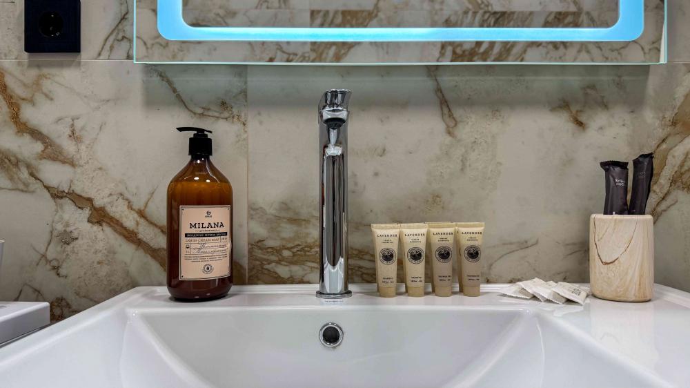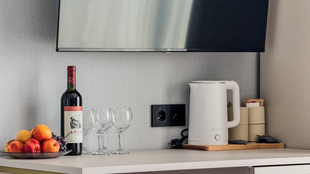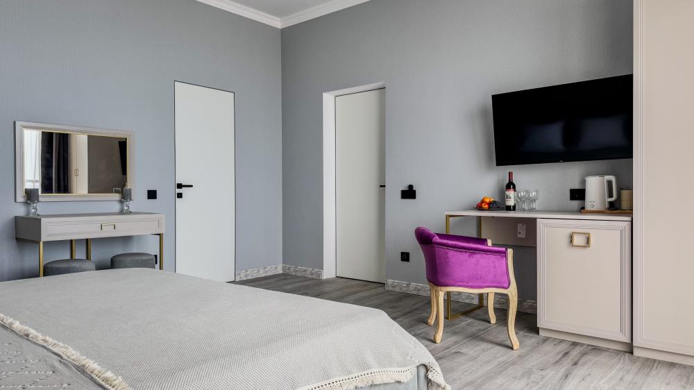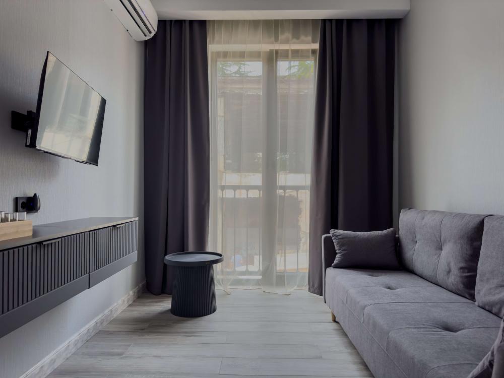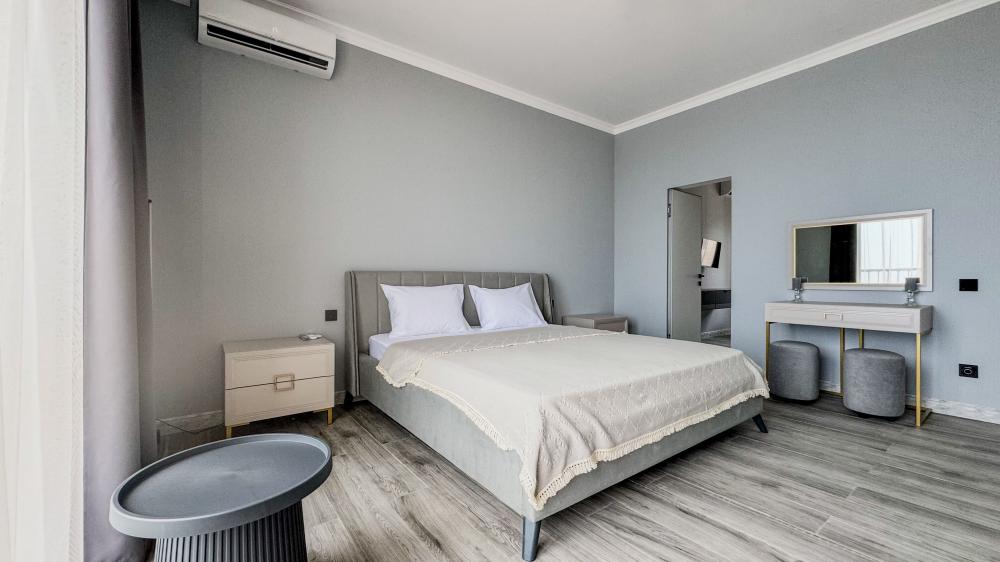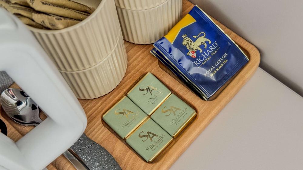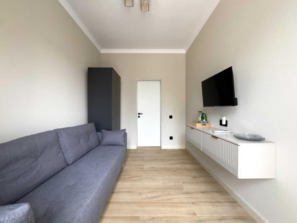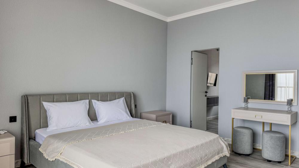 Отель «Sun Amra» расположен в живописном районе Рыбзавода поселка Лдзаа. Здесь чистейшее тёплое море Пицундской бухты и песчано-галечный пляж, который начинается прямо от порога. Всего 6 просторных двухкомнатных номеров категории Люкс (размещение до 4 гостей, изолированные комнаты) с панорамными окнами и собственными балконами с прямым видом на море. В каждой комнате современная авторская мебель, уютные декоративные акценты и всё необходимое для полноценного отдыха: кондиционер, телевизор, чайный набор, тропический душ, косметика, мягкие полотенца, фен и даже стиральная машина. На балконе качественная мебель, чтобы наслаждаться рассветами и закатами прямо у моря. С детьми старше 10 лет. Размещение с животными не допускается. Рядом кафе, столовые, магазины и остановка общественного транспорта.
