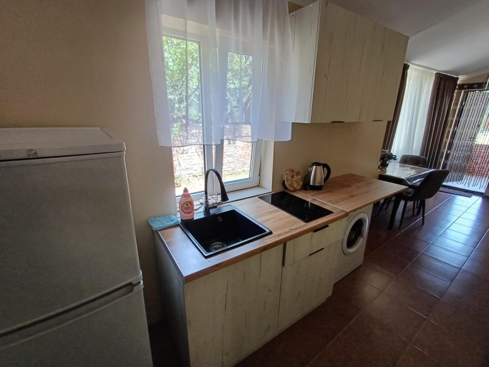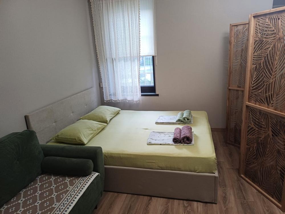 Сдаётся новый апарт-домик с уютным балконом в самом центре Сухума. Домик расположен в 100 м от прогулочной части набережной и в 5 минутах ходьбы от галечного пляжа. Все необходимое рядом - круглосуточный магазин, столовая, кафе, рестораны, в том числе самый популярный в Абхазии ресторан этнической кухни "Нартаа", находятся в шаговой доступности. Также, недалеко от Вашего места отдыха, располагается современный Русский драматический театр с широким репертуаром. В домике просторная комната с современным дизайном. Оборудованная кухня (холодильник, варочная панель, микроволновая печь, электрочайник, посуда). Уютный балкон. Парковка рядом с домом. Тёплый пол. Кондиционер. WI-FI, Телевизор. Стиральная машинка. Гладильная доска, утюг. Постельное белье, полотенца.