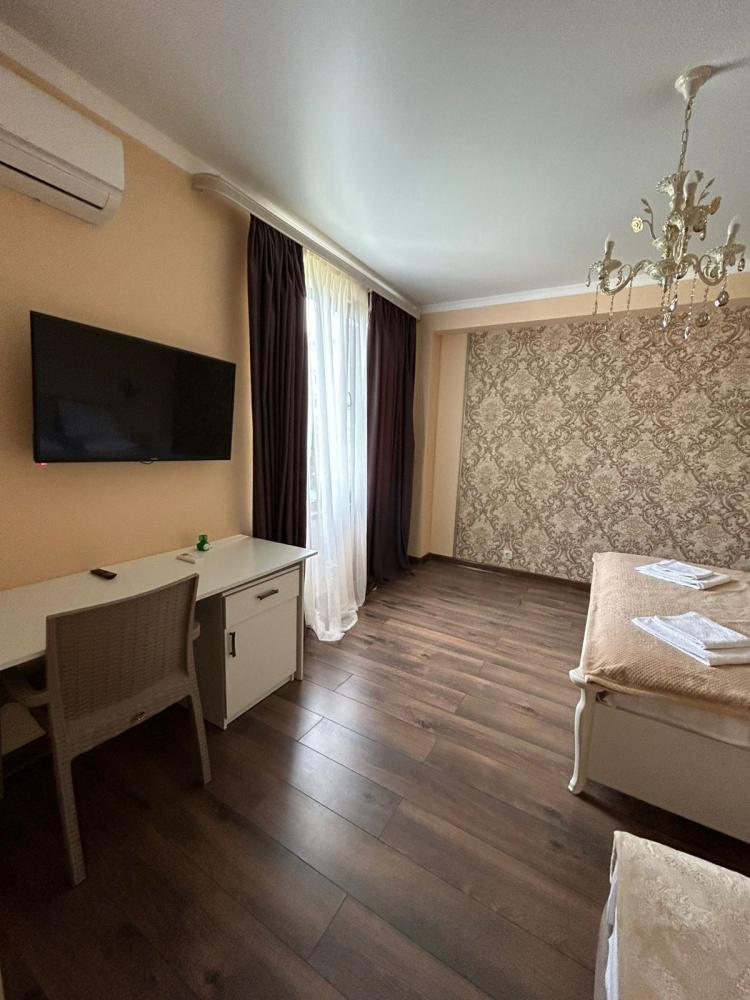 Гостевой дом расположен в городе Сухум, в знаменитом районе «Маяк», в 50 метрах от берега теплого Черного моря. Номера выполнены в пастельных тонах, имеют удобные двуспальные кровати или две, три односпальные. Номера оснащены всем необходимым для вашего комфортного пребывания: кондиционер, TV с выходом в интернет, Wi-Fi, собственная ванная комната, комплект банных полотенец. В каждом номере установлен вместительный шкаф, письменный стол. По предварительному запросу предоставляются детские кровати (до 3х лет) - бесплатно. Вы всегда сможете отдохнуть на одной из трёх террас общего пользования, с них отличный вид. На третьем этаже открыта терраса, видно море. Также есть место возле водопада на улице. Для гостей предусмотрены 2 отдельные кухни с холодильником, плитой и духовым шкафом. Свое кафе, готовим под заказ любую кухню (по желанию за отдельную плату). Также работают доставки из многих ресторанов/кафе. Имеются услуги прачечной. Видеонаблюдение по всей территории. Частная парковка у дома под видеонаблюдением. Магазинчики первой необходимости есть рядом. Супермаркет в районе рынка. До него 8 минут на такси, 10-12 мин на общественном транспорте, остановка в 3-4 минутах от гостевого дома. Отдых у нас - это возможность полностью отключиться от суеты повседневной жизни. Все продумано для вашего комфортного и безопасного отдыха. Прекрасный вариант провести время в тихом спокойном месте, вдали от шумного города.