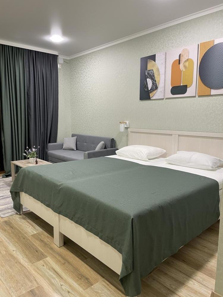 В самом центре Сухума сдаются чистые и уютные номера со всеми условиями для комфортного отдыха. Место, где чистый горный и морской воздух соприкасаются. В пешей доступности такие достопримечательности, как обезьяний питомник; ботанический сад; станция Гума; музей; русский театр; абхазский драматический театр; фонтаны; набережная Махаджиров и знаменитая Брехаловка; парки; филармония; проспект Аиааира; множество магазинов, кафе и ресторанов. Два двухместных номера с удобствами (плюс двухместный раскладной диван). В каждом номере ТV, кондиционер, холодильник, чайник, фен, гигиенический душ. На два номера просторный уютный двор с общей летней кухней, где есть все необходимое для готовки (посуда, свч печь, микроволновка, кофеварка). Из номеров открывается замечательный панорамный вид, что позволяет наслаждаться прекрасной природой. Для дневного сна предусмотрены шторы блэкаут. Зона барбекю и бесплатная парковка (крытая/открытая). При заселении предоставляем постельное белье, набор полотенец, халаты, тапочки и гигиенические принадлежности. С нас чистота, уют и комфорт. С вас положительные эмоции.