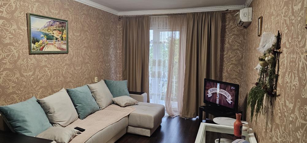 Сдается, посуточно, благоустроенная однокомнатная квартира с балконом на третьем этаже пятиэтажного дома, расположенного в центральной части города, в квартале от набережной. Квартира в отличном состоянии, произведен хороший ремонт, соблюдены все необходимые условия для достойного проживания. Удобная современная мебель. Просторный раскладной диван на двух персон, кресло с раздвижным механизмом, что позволяет удобно растянуться, сидящего на нем. В наличии жк ТВ (нтв+), высокоскоростной интернет, кондиционер, стиральная машина, электрическая плита с керамическим покрытием, большой двухкамерный холодильник. Предоставляется полный комплект посуды с столовыми приборами. На случай отключения центрального водоснабжения, предусмотрен автоматизированный накопительный бак. Квартира рассчитана на проживание двоих человек. Рядом, в 3 минутах ходьбы, центральная набережная, культурная ее часть, продуктовые магазины, кафе, рестораны и прочие места отдыха и развлечений.