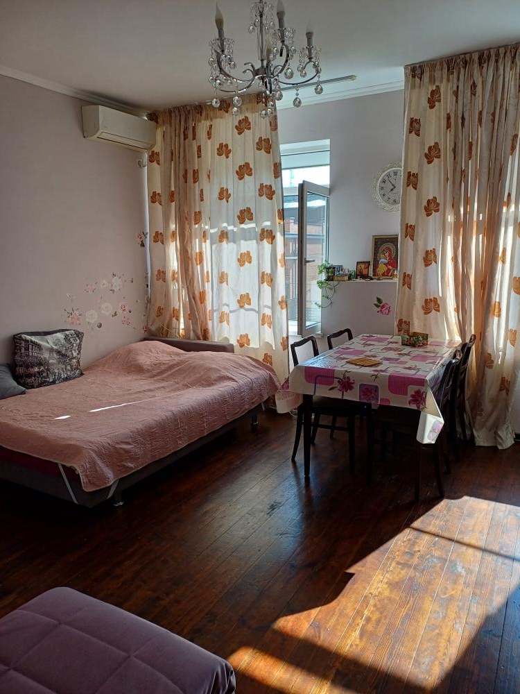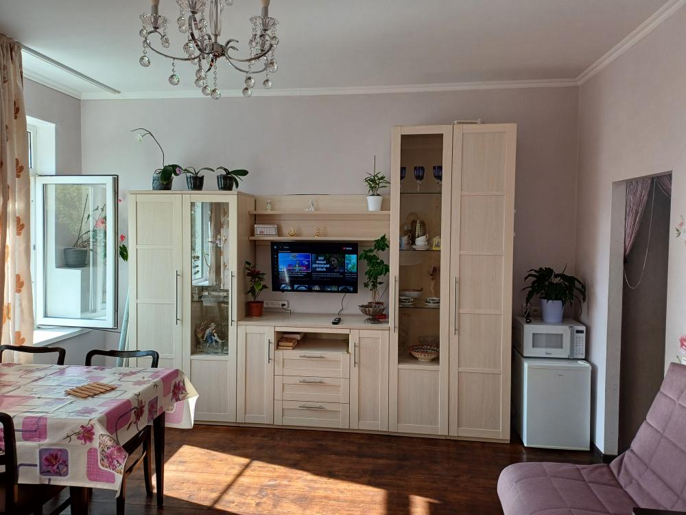 Уютная студия в самом центре города. 3 Спальных места. Кондиционер, Микроволновая печь, холодильник, фен. Телевизор с подключением к сети интернет. Собственная ванная комната и туалет. Квартира тихая, чистота гарантируется.